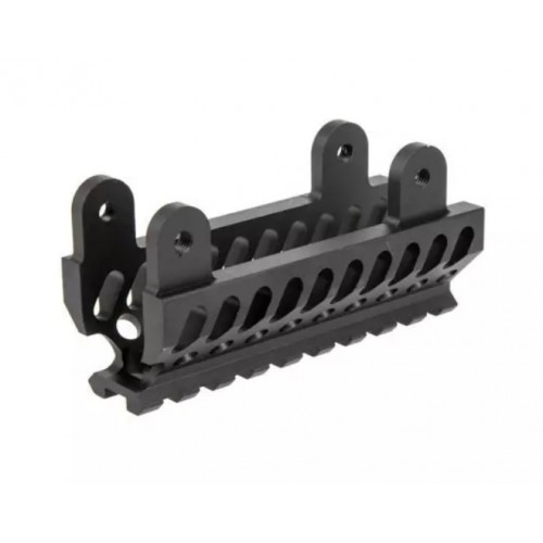 Top rail for B-10M handguard made entirely of durable and light aluminum that is an excellent imitation of the Russian original intended for live firearms. Rails allow for improved functionality and appearance of the classic AK construction by following the newest trends met in Russian Federation armed forced as well as those favored by civilian users. Rails are attached to the handguard using four screws included in the set.