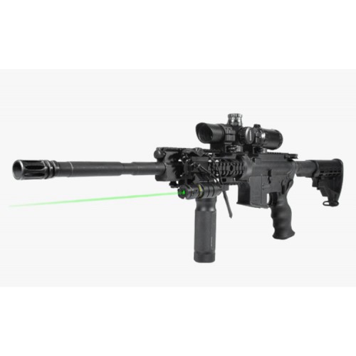 Тактический юстируемый целеуказатель LEAPERS Green Combat Laser Sight имеет прочную конструкцию из аннодированого алюминиевого сплава и поставляется с кронштейном для установки на планку WEAVER. Лазер работает на длине волны 530-540 нм, зеленого цвета. Мощность лазера - 2,5-4 мВт. На дистанции в 50 метров размер точки - около 3,5 см в диаметре. Целеуказатель имеет широкий диапазон юстировки и высокоточные механизмы (под шлицевую отвертку). Идеален для установки на любое огнестрельное оружие имеющее посадку Weaver - пистолеты, винтовки, а так же дробовые ружья. Включение и выключение - через выносную кнопку.
