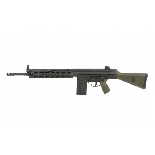 Описание автомата эл/пневматич Jing Gong JG-100 G3A3 T3-K3: Электропневматическая винтовка JG-100 T3-K3 является страйкбольной версией боевого автомата G3A3. Изделие производится китайской фирмой Jing Gong. Игровой привод сохранил все внешние черты своего боевого аналога. Так его корпус и цевье сделаны из высокопрочного ABS пластика, прекрасно выдерживающего ударные нагрузки, а ствольной коробке установлены пазы для крепления оптических прицелов. Электрическая часть привода рассчитана на работу с аккумуляторами разных мощностей и конструкций, в том числе и имеющими высокую токоотдачу, типа литий-полимерных, вырабатывающих напряжение 7,4 В. Сам аккумулятор устанавливается в полости приклада, размеры которой позволяют разместить источник энергии большой емкости. Привод оборудован гирбоксом 2 версии, который считается наиболее надежным среди устройств подобного типа. Все части гирбокса являются стандартными и для других устройств такого рода, изготавливаемых другими производителями. В комплект автомата, входят: бункерный магазин (емкость 500 шаров), тестовые шарики, зарядное устройство и аккумулятор, шомпол и инструкция. |