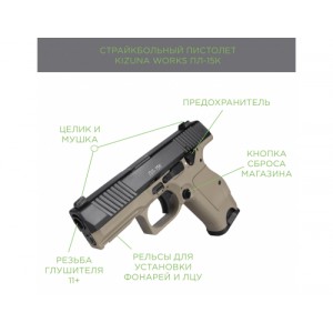 Страйкбольный пистолет KIZUNA WORKS ПЛ-15К TAN-BK, металл, GBB