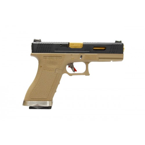 Страйкбольный пистолет WE Tech G Force G17 T6 GBB pistol (Black/ Tan/Silver) WE-G001WET-6