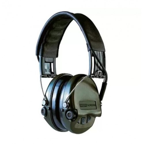 Наушники активные MSA Sordin Supreme Pro-X, стерео, SNR 25dB, NRR 18dB, память крайней настройки, отклик 0,8сек., Waterproof 100%, хакки/черн.. вход AUX 3,5мм., обод - сталь/кожа, чашки - поролон, 2хAAA, 310гр.