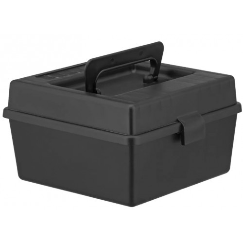 На крышке кейса расположена удобная складная ручка для переноски. Непрозрачный корпус скрывает содержимое от посторонних. На этикетке кейса указаны подходящие калибры патронов.