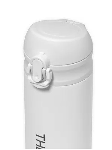 Термокружка имеет защиту от случайного открывания в виде кольца-фиксатора. Продуманная конструкция крышки-пробки позволяет открывать её лёгким нажатием на кнопку и закрывать одной рукой.