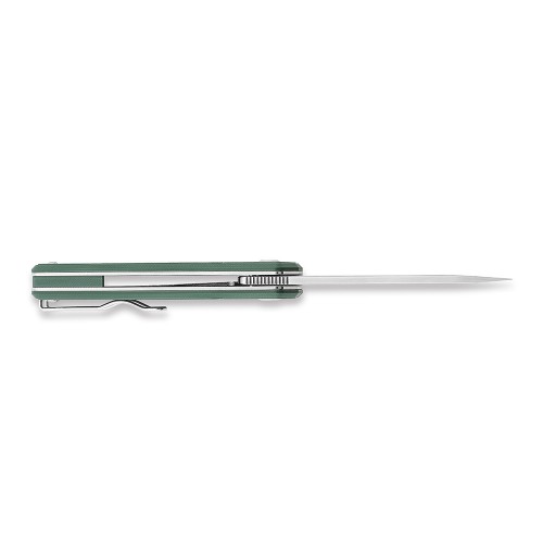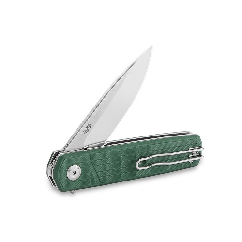 Рукоять складного ножа выполнена из прочного композитного материала — стеклотекстолита G10, устойчивого к механическим повреждениям, влаге и температурным перепадам. Текстурированная поверхность и форма рукояти обеспечивают уверенный хват в любых условиях. Цвет рукояти — зеленый, что подчеркивает утилитарный и сдержанный внешний вид ножа.