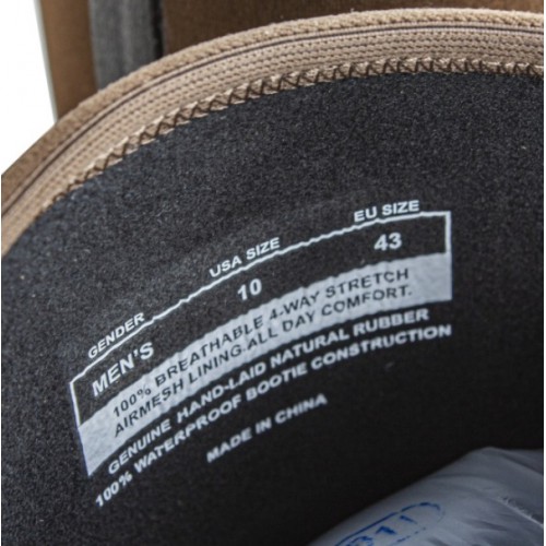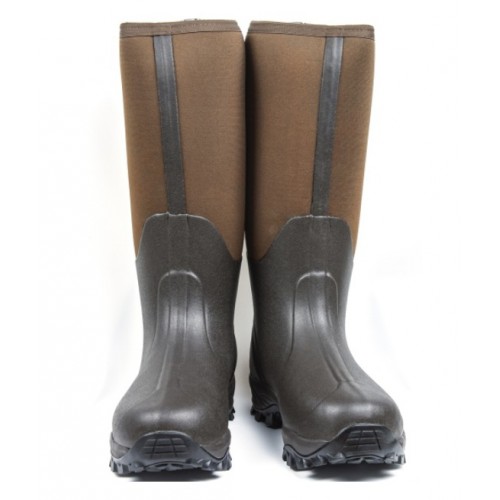 Высокое, полностью водонепроницаемое голенище из неопрена облегает ногу, защищая от попадания внутрь сапога различной грязи. Мягкое, за счет гибкости материала, голенище подстраивается под движение ноги, обеспечивая удобство при длительной носке. Технологичная подкладка обеспечивает воздухообмен и своевременный отвод влаги для поддержания комфортных условий внутри сапога долгое время. Стелька из EVA является хорошим амортизатором, снимая дополнительную нагрузку с ног и спины. Нижняя часть выполнена из износостойкой резины и хорошо защищает ноги от воды и механических повреждений, в районе носка и пятки сапог идёт усиление материала, для защиты ног от ударов камнями или ветками. Анатомическая форма колодки обеспечивает хорошую фиксацию стопы внутри сапога. Двухслойная толстая подошва с грубым протектором. Внешний слой выполненный из износоустойчивой резины, обеспечивает сцепление со сложными поверхностями при передвижении по пересеченной местности. Внутренний более мягкий слой, придает ноге дополнительную устойчивость. Для легкости переобувания, сапоги имеют текстильную петлю на голенище и шпору-упор чуть выше каблука.
