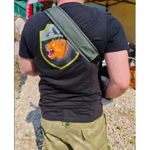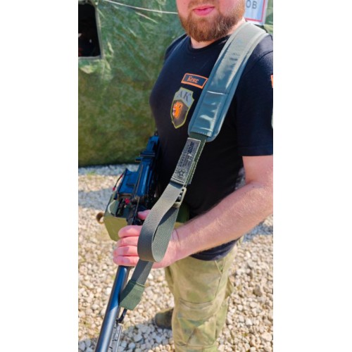 Новинка порадует эластичным эффектом стропы, смягчающим воздействие веса оружия на плечо. В комплект входит обхват с полукольцом для установки на горловину приклада.