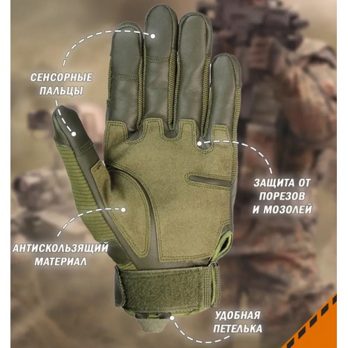 Перчатки тактические защитные A.S.S. Tactical-26 олива [STRIKE GEAR]