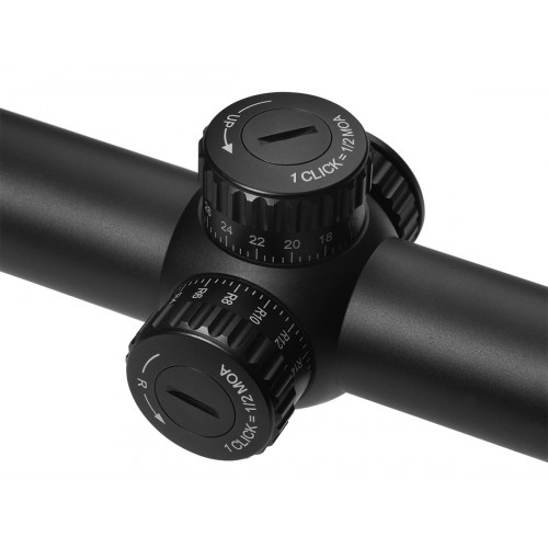Барабанчики ввода поправок высокие и открытые. Блок подсветки расположен в средней части прицела, и работает от батарейки типа CR2032. Подсветка имеет 11 уровней, что позволяет настроить её под любые условия. Подсвечивается центральная точка.