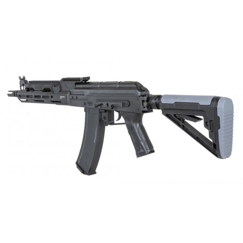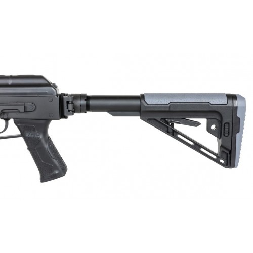 A replica of an AK-based tactical carbine manufactured by Arcturus. The AKMOD1 was made mainly from steel and a few elements from aluminium, a durable polymer and equipped with a number of amenities improving the performance of the rifle. Steel is used to make the base of the musket, barrel holder, cover, dummy lock, selector, barrel locking mechanism, trigger guard, barrel lock, magazine lock and dummy locking chamber. Aluminum is used for the barrel, 5-position stock guide, the barrel base, the gas tube with RIS rail, the M-LOK handguard and the flame damper. The magazine, stock with rubber feet and pistol grip with integrated trigger guard are made of polymer.
