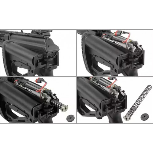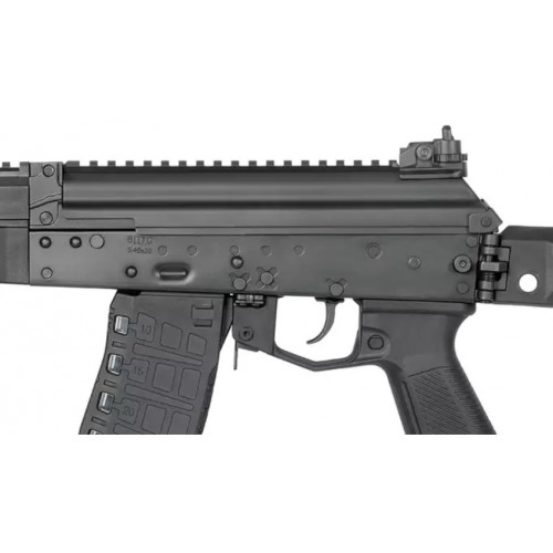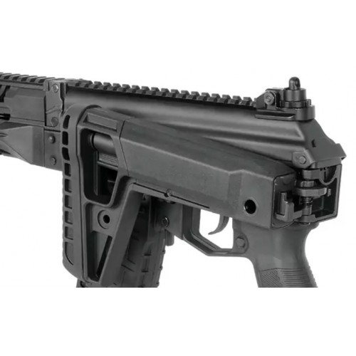 Основным отличием данной модели от классического АК-12 это замена приклада на более легкий и компактный, приклад сохранил все функций предшественника, его можно сложить или отрегулировать по длине. Изменилась текстура пистолетной рукоятки и еще она едина с предохранительной скобой и рычагом отмыкания магазина.