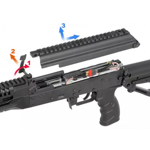 - RIS-планки на цевье и крышке ствольной коробки позволят установить любой необходимый обвес, без дополнительных планок и креплений;