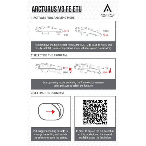 - Firing Mode: Semi Auto / 3rd Burst (Programmable) / Binary (Programmable) / Full Auto / Safety