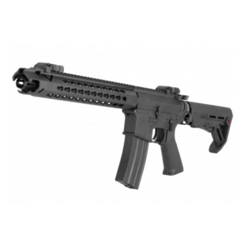 Верхний и нижний рессиверы, органы управления и труба приклада выполнены из алюминиевого сплава. Приклад, пистолетная рукоять - пластиковые. Аутентичные маркировки на корпусе, копируют боевой аналог.