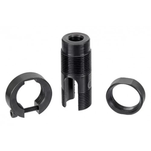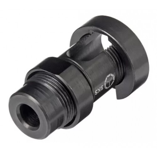 Переходник Вектор-7,62 VR-SKS предназначен для крепления на ствол СКС и последующей установки различных дульных устройств с резьбой М24х1,5. В комплекте идут фиксирующий хомут с винтом и контргайка.