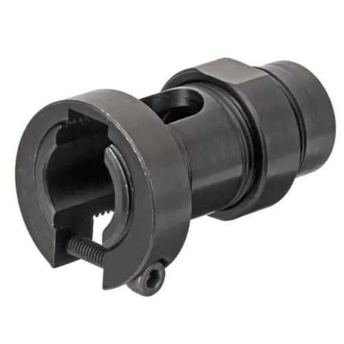 Переходник надёжно вставляется в обхват мушки и плотно фиксируется хомутом с винтом. Такая конструкция гарантирует надёжность крепления и целостность при высоких нагрузках. Контргайка фиксирует установленный ДТК в правильном положении.