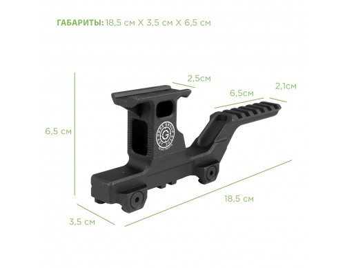Планка с двойным креплением обеспечит вам централизованное и быстрое определение цели, ведь она предусматривает совместное использование оптики и тактического блока таким образом, что они будут расположены на одной линии при подъеме автомата. Вы сможете поставить совместно оптический и коллиматорный прицелы, прицел и анпек, а также другие комбинации прицельных и тактических приспособлений на ваше усмотрение. Планка изготовлена из прочного алюминия.