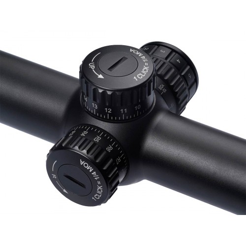 Прицельная сетка 61 (Half MD), расположенная во второй фокальной плоскости (SFP), с увеличением кратности остаётся неизменно тонкой. При этом угловые размеры сетки пропорционально изменяются. Отстройка параллакса осуществляется боковым барабаном (SF) от 9,14м до бесконечности.