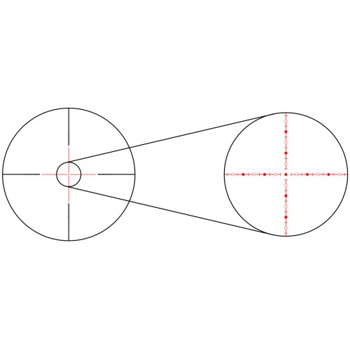 Прицельная сетка 31 (Half MD), расположенная во второй фокальной плоскости (SFP), с увеличением кратности остаётся неизменно тонкой. При этом угловые размеры сетки пропорционально изменяются. Отстройка параллакса осуществляется боковым барабаном (SF) от 9,14м до бесконечности.