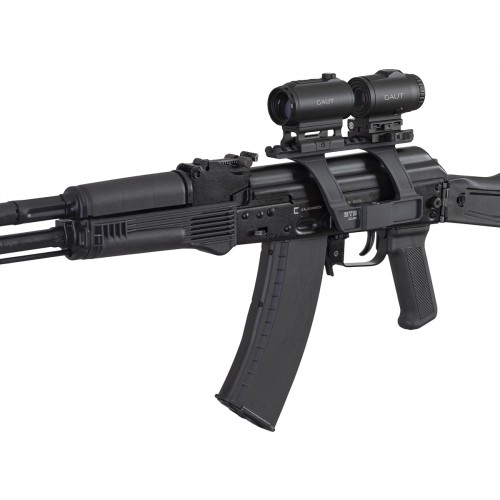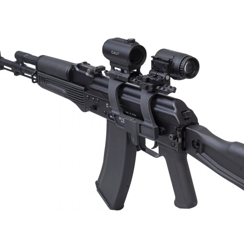 Увеличитель монтируется на стандартную планку Picatinny при помощи быстросъёмного кронштейна, входящего в комплект. Механизм откидывания в сторону даёт возможность мгновенно переключаться между режимами с увеличением и без него. Это обеспечивает максимальную гибкость и оперативность при выполнении стрелковых задач.