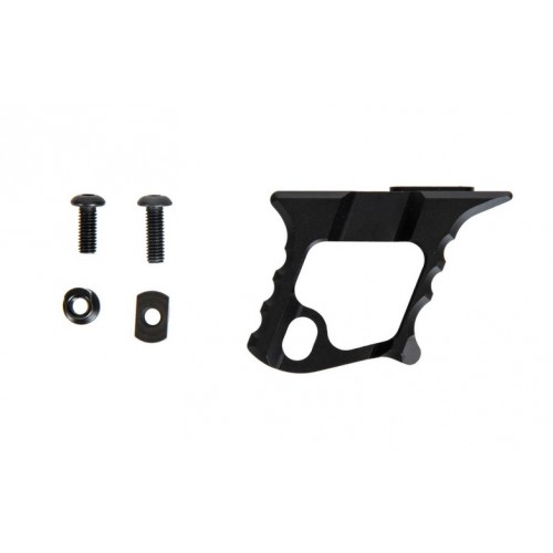 Light, made of aluminum tactical handstop grip. The grip can be mounted on the mounting rails of the MLOK and KEYMOD systems - the necessary parts are included in the set.