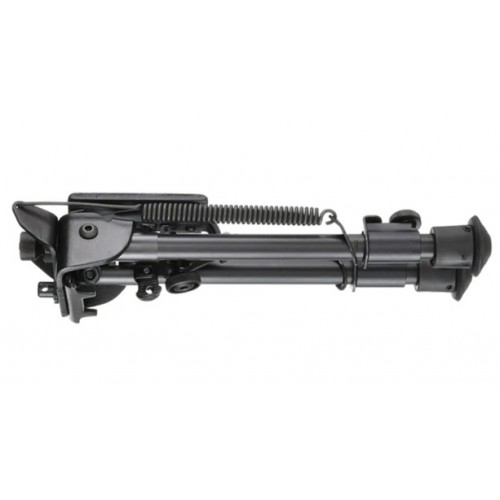 База сошек – цельная, прочная. Крепятся сошки под цевьё за антабочный винт или за ствол оружия (специальный адаптор в комплект не входит, а приобретается отдельно). Идеально подходят для стрельбы сидя или лёжа. Ножки со встроенными возвратными пружинами быстро и легко складываются. Длина ножек плавно регулируется от 230мм. до 330мм. Каждая ножка состоит из 2-х секций. Длину можно регулировать на любую высоту, с высокой точностью. Выдвинуть на нужную длину, зафиксировать стопорным кольцом. При необходимости сложить сошки нужно ослабить стопорное кольцо и они автоматически сложатся. При выдвижении ножки до конца, она автоматически стопориться. А при нажатии на кнопку стопорного кольца – автоматически складывается. Ножки сошек складываются вдоль цевья или ствола в одном направлении.