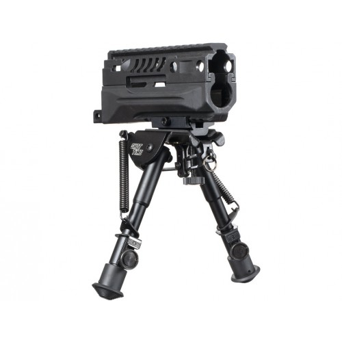 Усиленная конструкция сошек обеспечивает дополнительную фиксацию ствола в направлении стрельбы, повышение кучности и устойчивости оружия. При правильной установке ножки сошек складываются вдоль цевья или ствола только вперёд (в сторону дульного среза).
