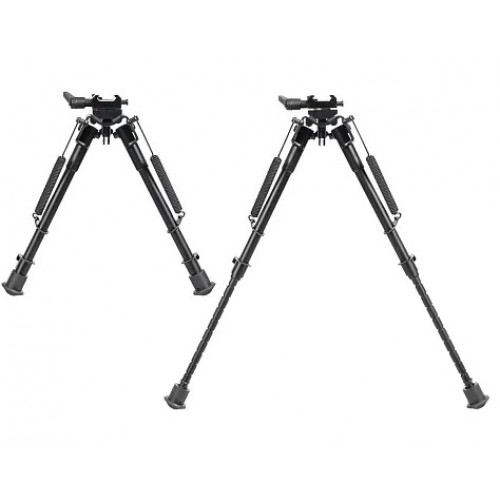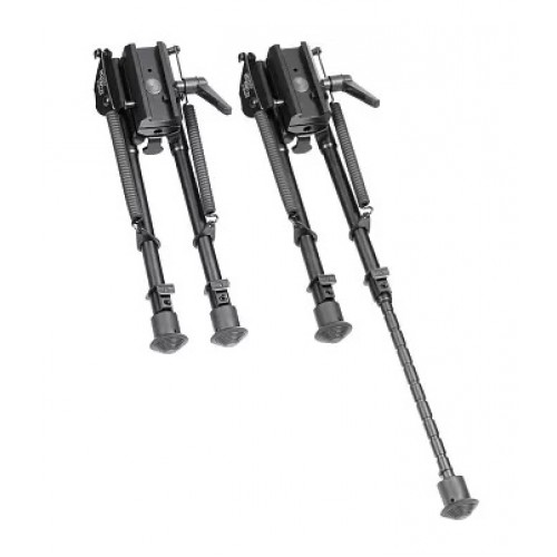 Длина ножек ступенчато регулируется от 224 до 377мм, что обеспечивает высоту сошек от 235 до 365мм. Каждая ножка состоит из двух секций и имеет 10 позиций регулировки длины. Ножки раскладываются автоматически, нажатием на кнопку, а складываются вручную. При нажатии на кнопку секция выдвигается на всю длину под действием пружины. Для регулировки длины и возврата в исходное положение нужно удерживать кнопку нажатой и двигать ножку руками.